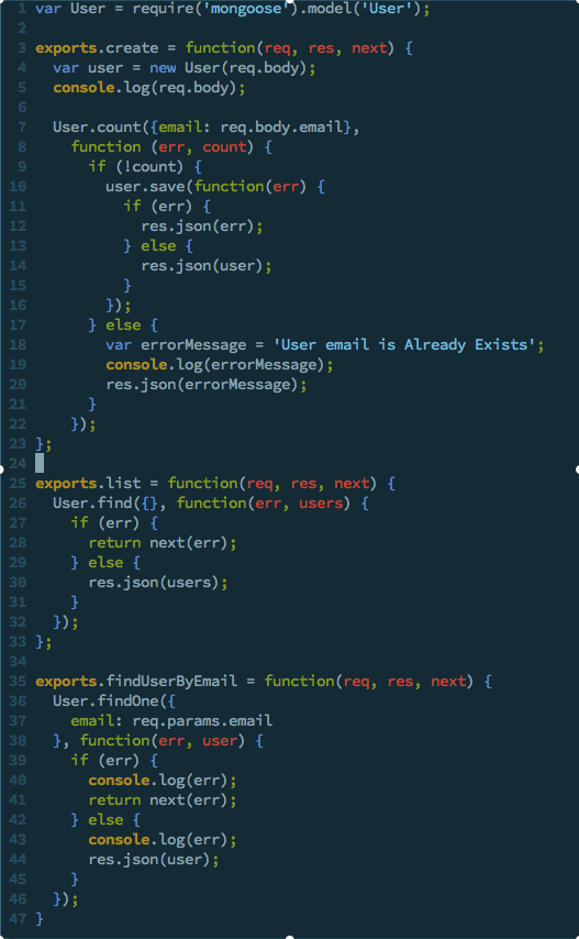 작성한 내용들을 아래와 같이 각각 express.js와 mongoose.js에 등록합니다.